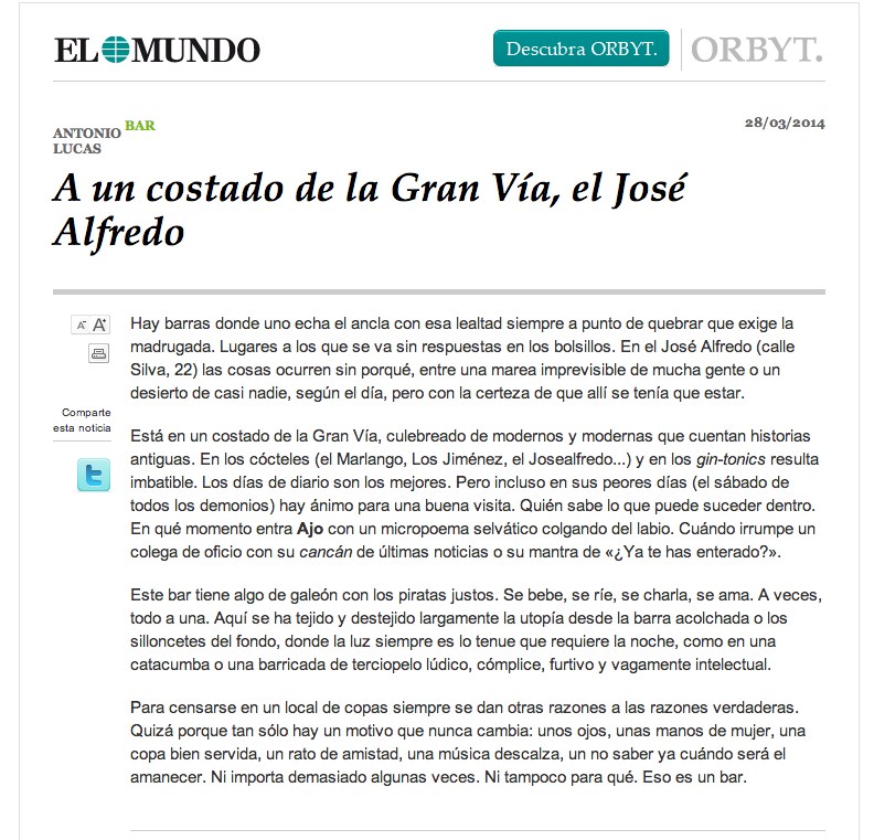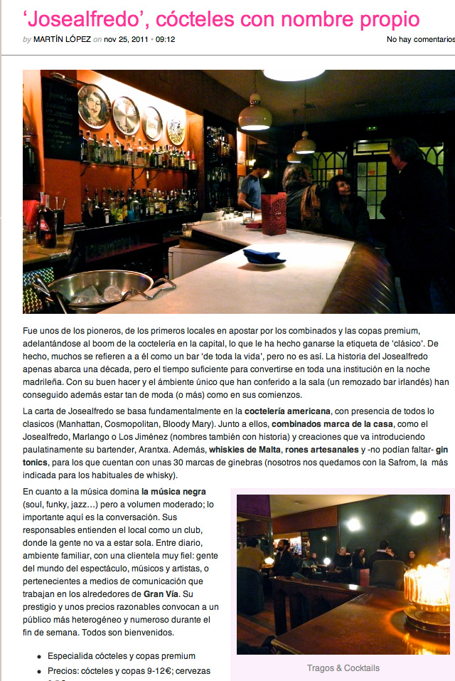mas informacionNuestros platos invaden el Jose Alfredo desde el 14 de septiembre , os espero allí para tomar un trago a partir de las 20h !!