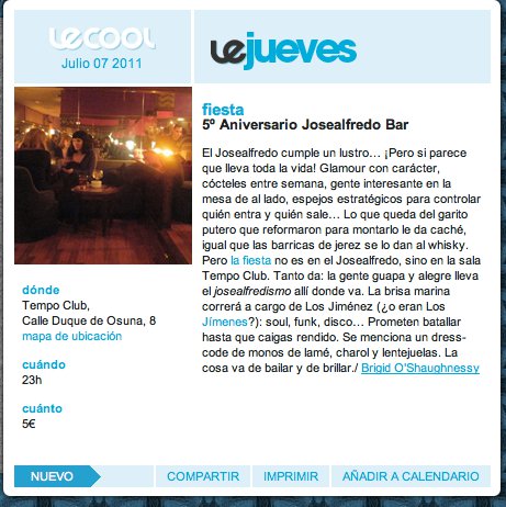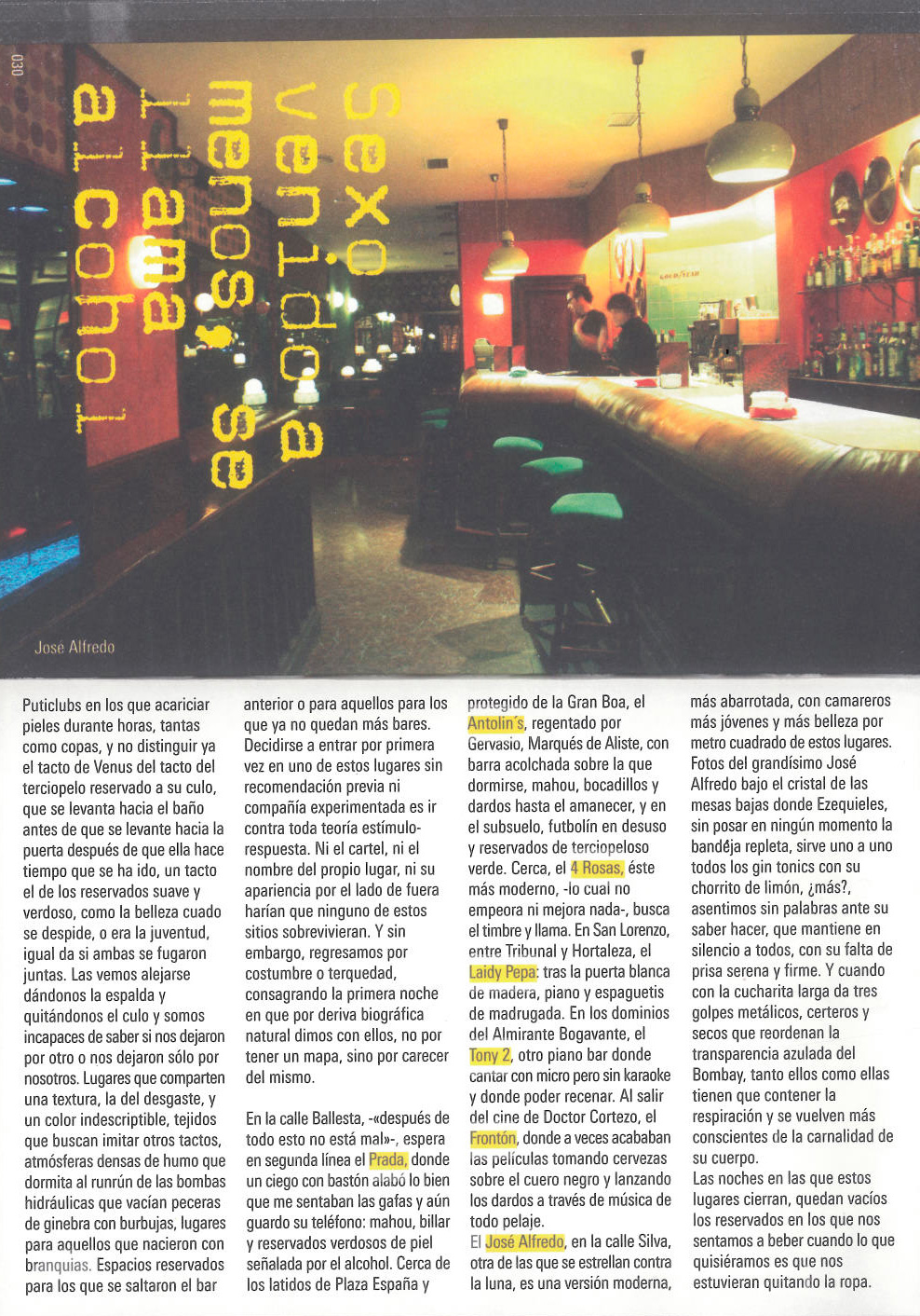 Sin entrada. Sin barra libre. Sin masificaciones. Sin precios hinchados en las copas. Sin pista de baile. Sin tener por qué vestir como no apetece. Pero, como siempre, con el mejor ambiente, los mejores tragos y la mejor compañía asegurados...